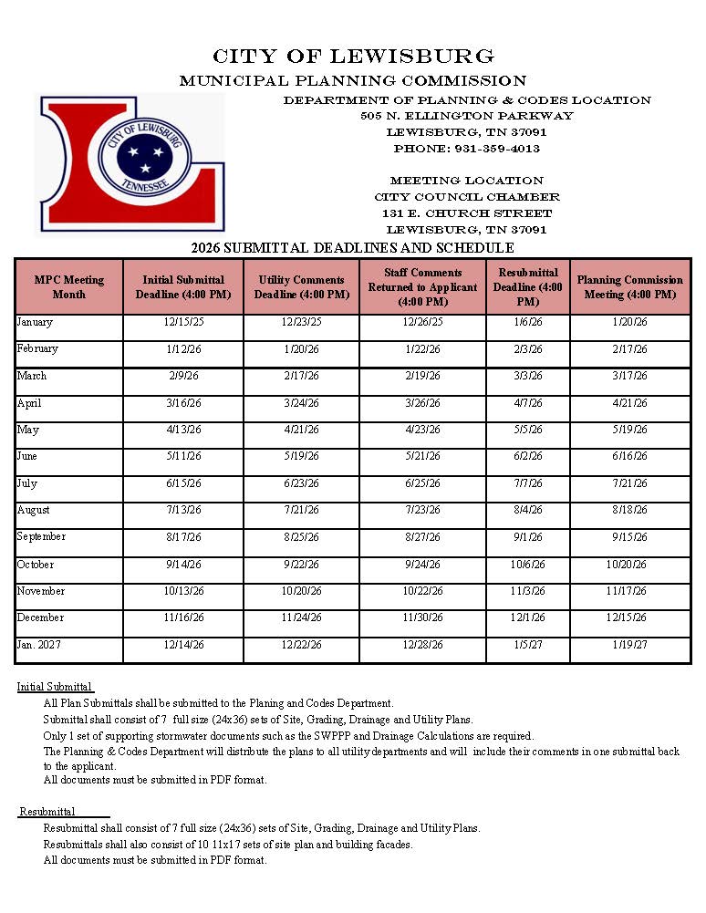 The 2026 Planning Commission Submittal Deadlines and Schedule is available: HERE.